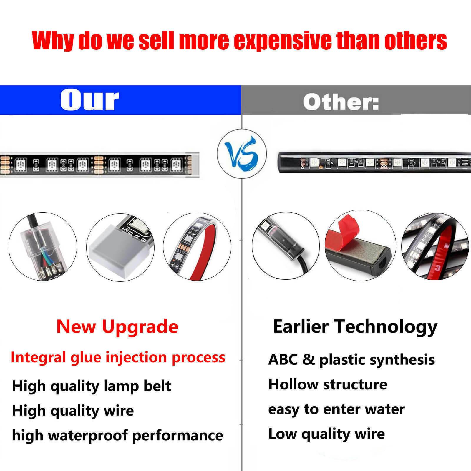 ▷ 【Easy to install】:Every motorcycle led light strip is flexible to bend and Simply stick the lights on surface via strong 3M adhesives and utilize clips equipped to hold it in place firmly.